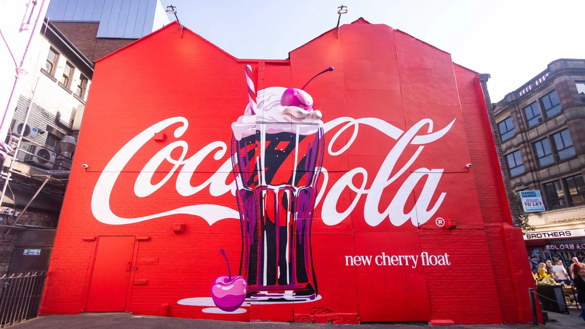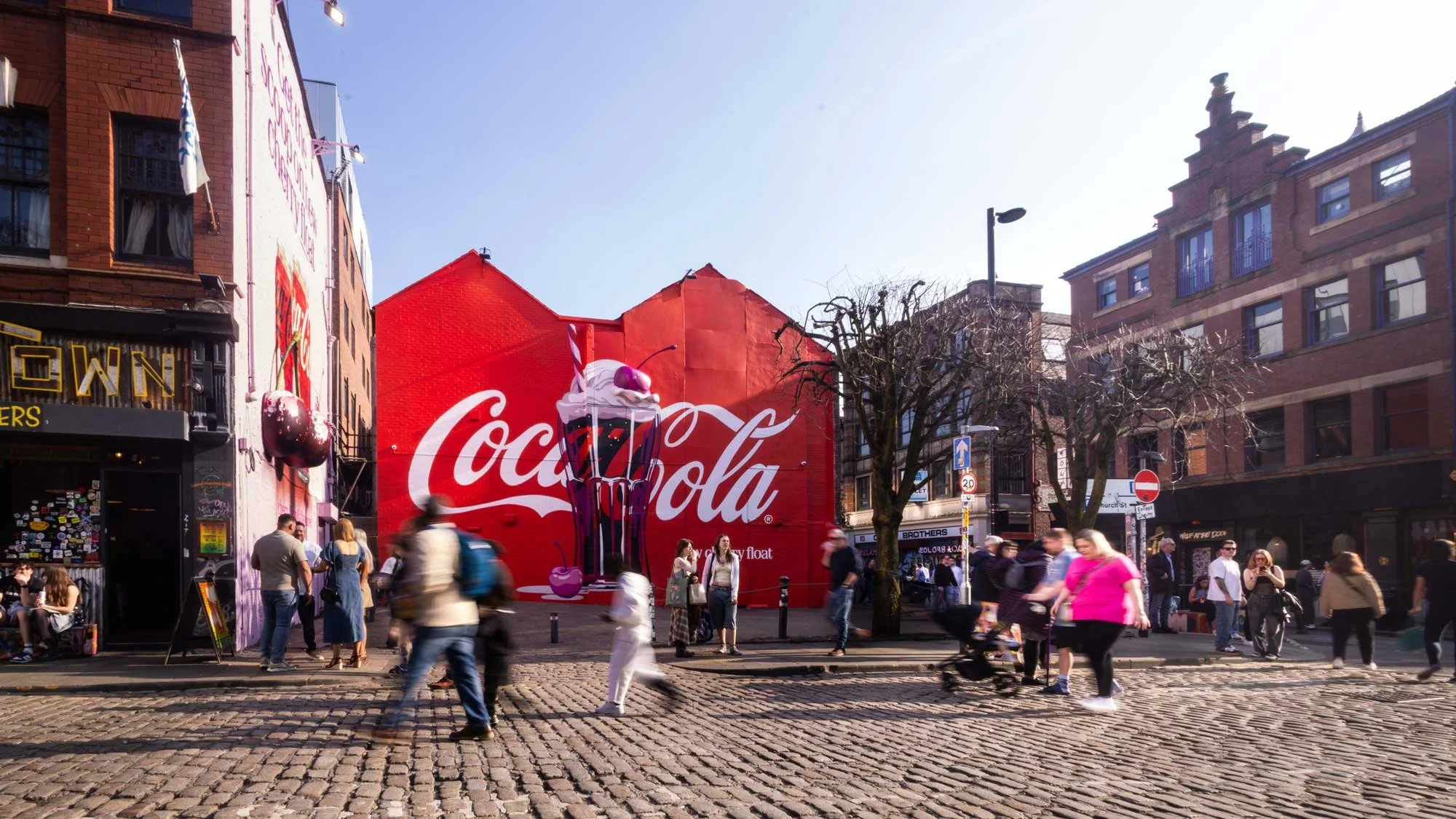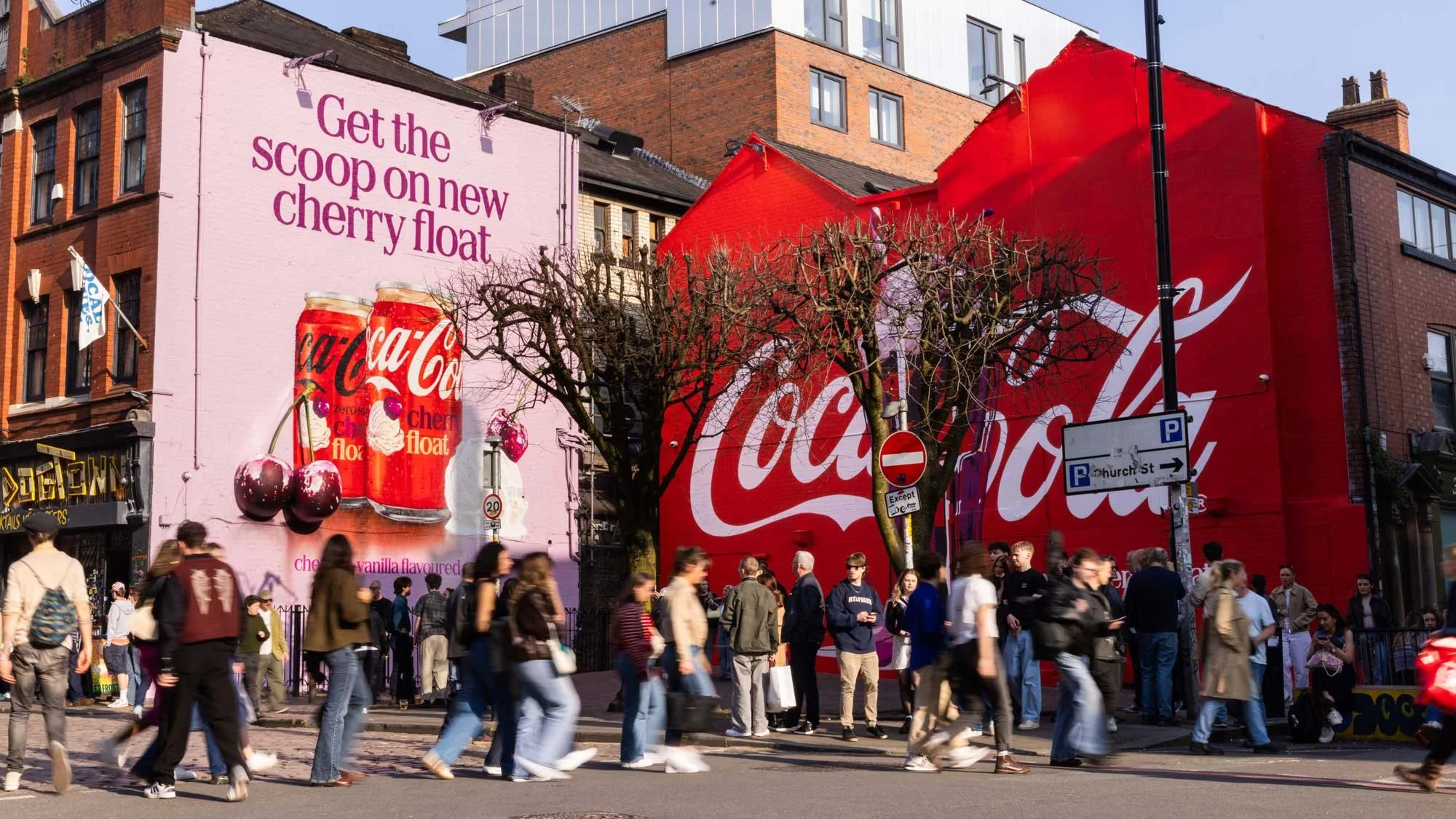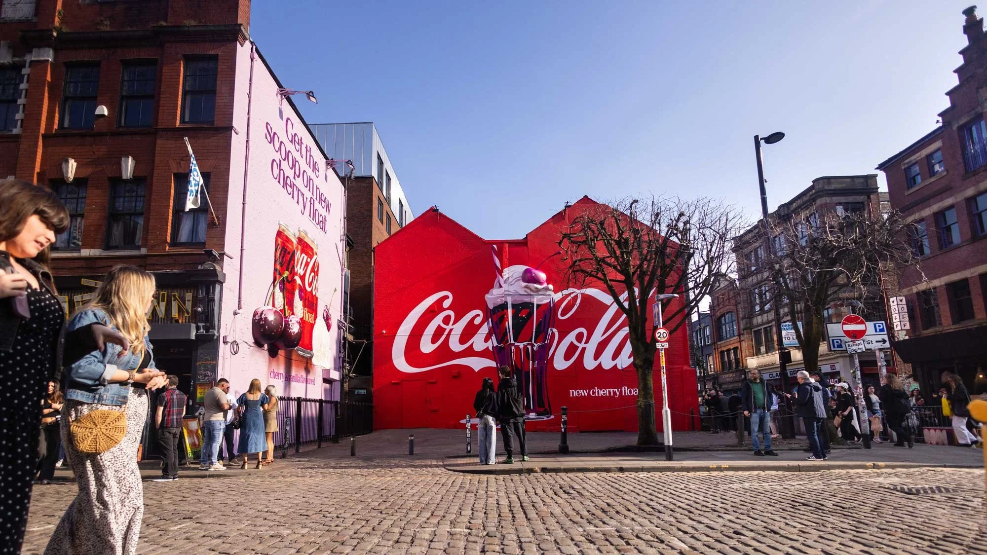 We painted these beautiful graphic paintings for Coca-Cola, to announce the launch of their new Cherry Float Flavour to the people of London, Manchester, Leeds and Liverpool. Inspired by the nostalgic taste of classic soda floats, this retro style of artwork was the perfect choice of painting to bring the product concept to life. Timed perfectly for the weather turning and the blossom blooming only increased the impact. In Manchester, the addition of 3D cherries to both walls, added to this must have photographic backdrop drawing additional crowds to gather in the Spring sunshine.