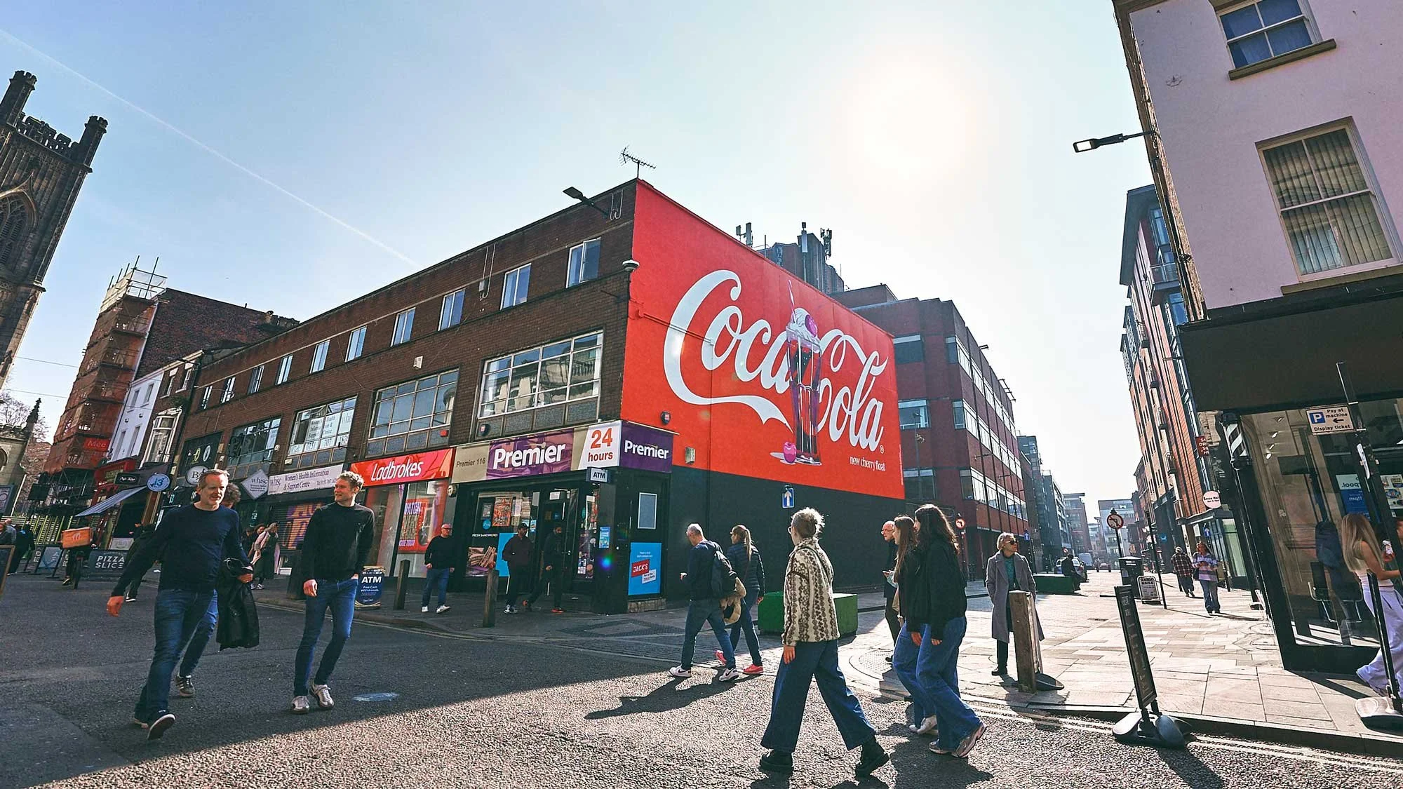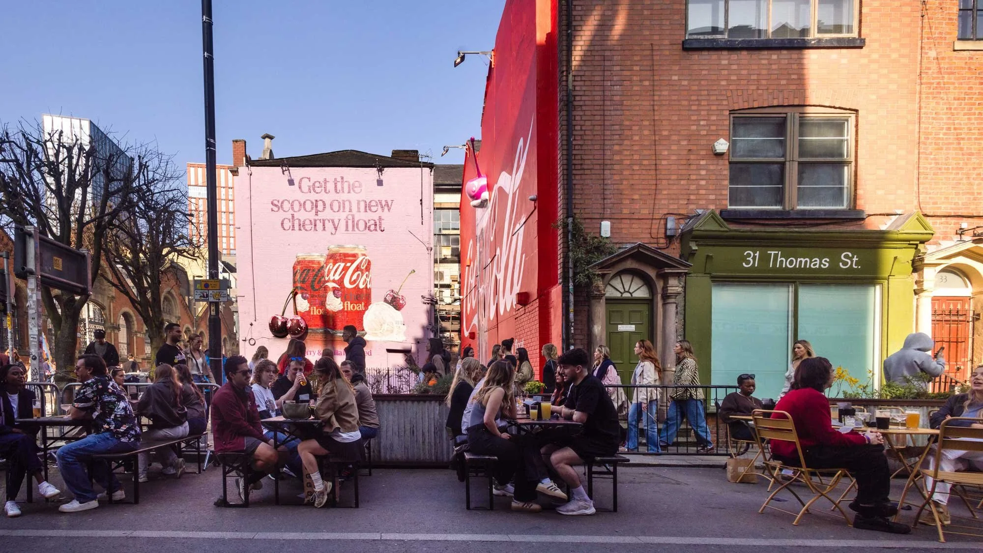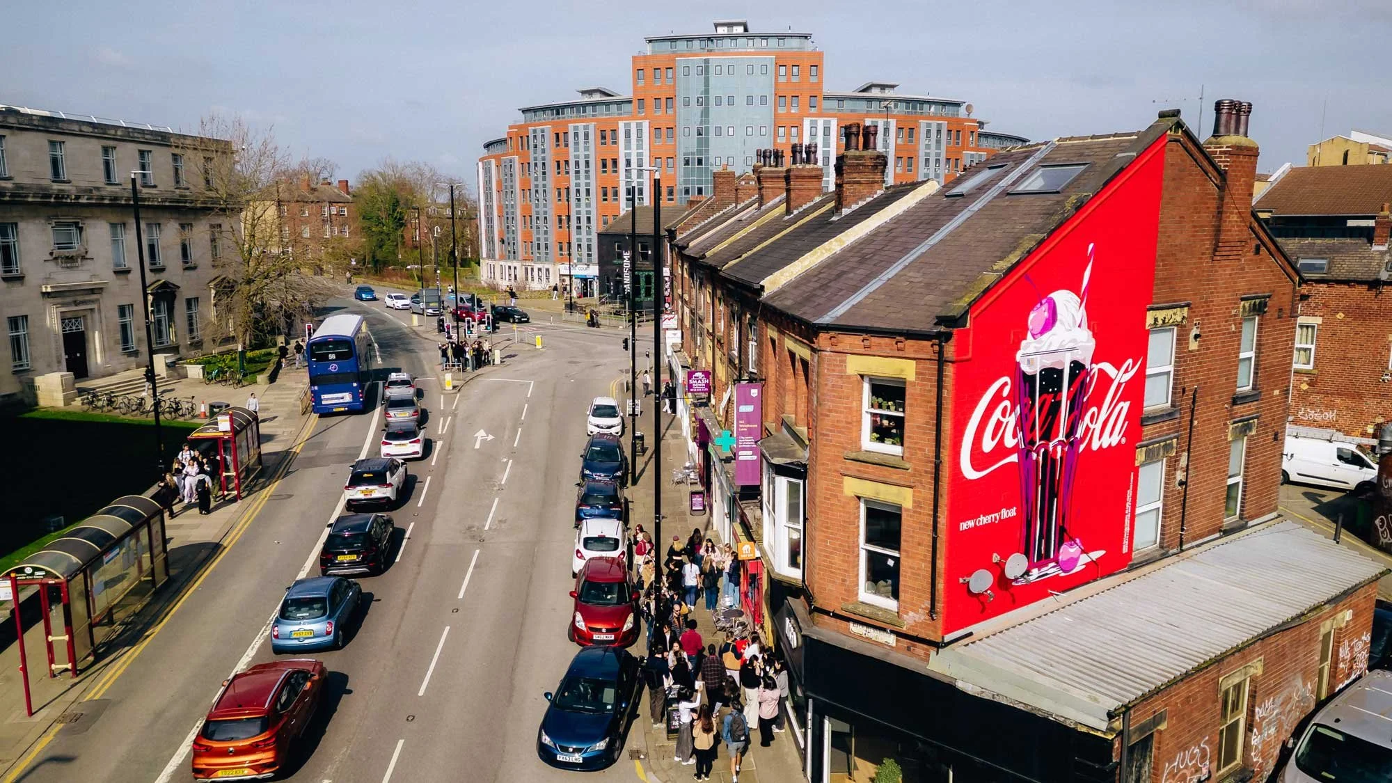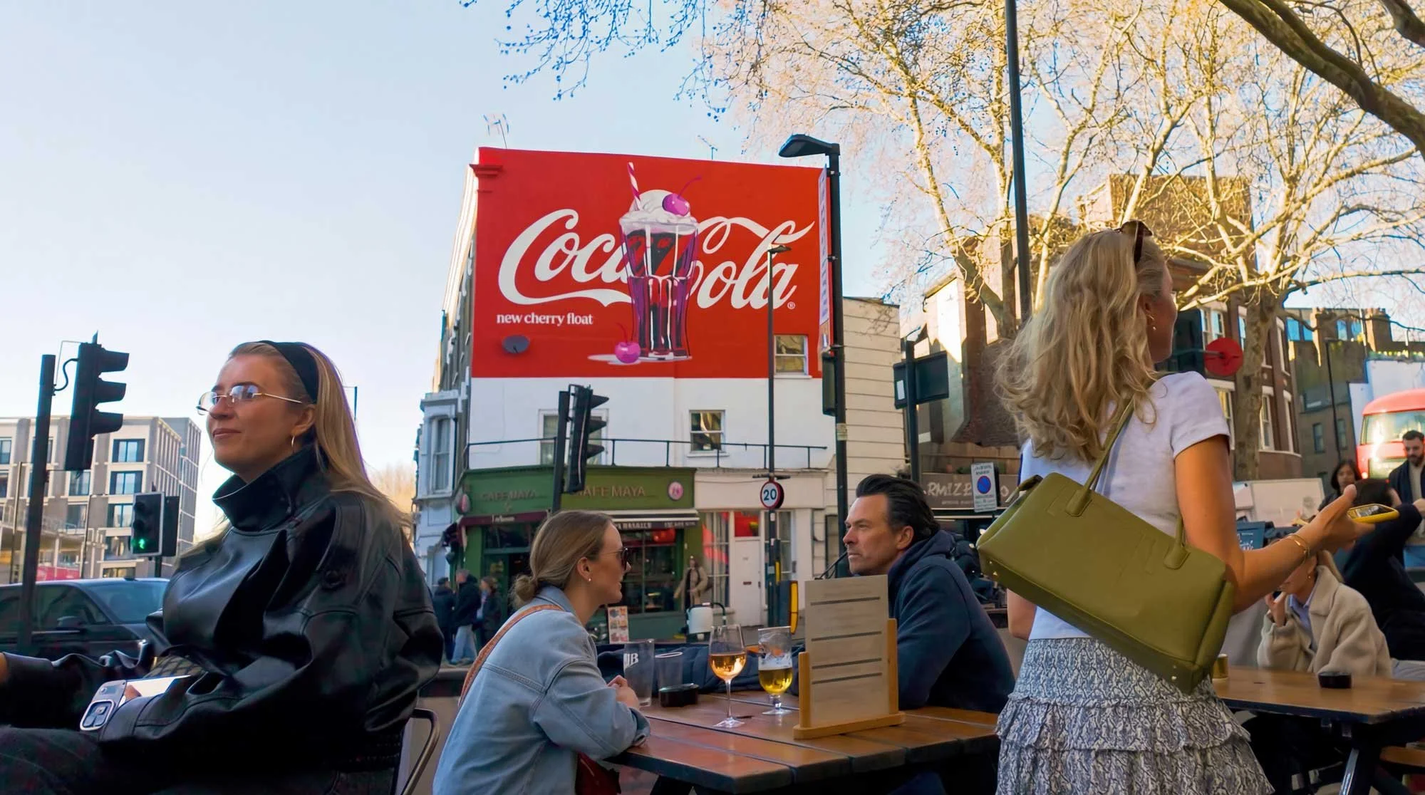 We painted these beautiful graphic paintings for Coca-Cola, to announce the launch of their new Cherry Float Flavour to the people of London, Manchester, Leeds and Liverpool. Inspired by the nostalgic taste of classic soda floats, this retro style of artwork was the perfect choice of painting to bring the product concept to life. Timed perfectly for the weather turning and the blossom blooming only increased the impact. In Manchester, the addition of 3D cherries to both walls, added to this must have photographic backdrop drawing additional crowds to gather in the Spring sunshine.
