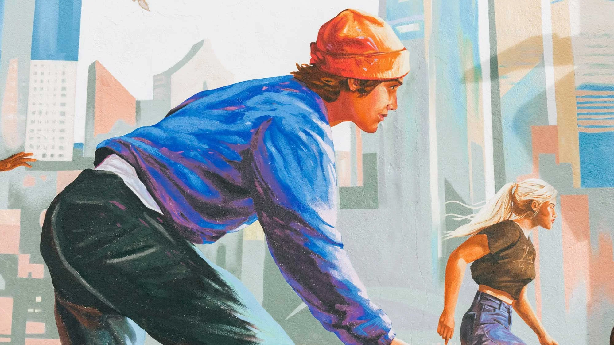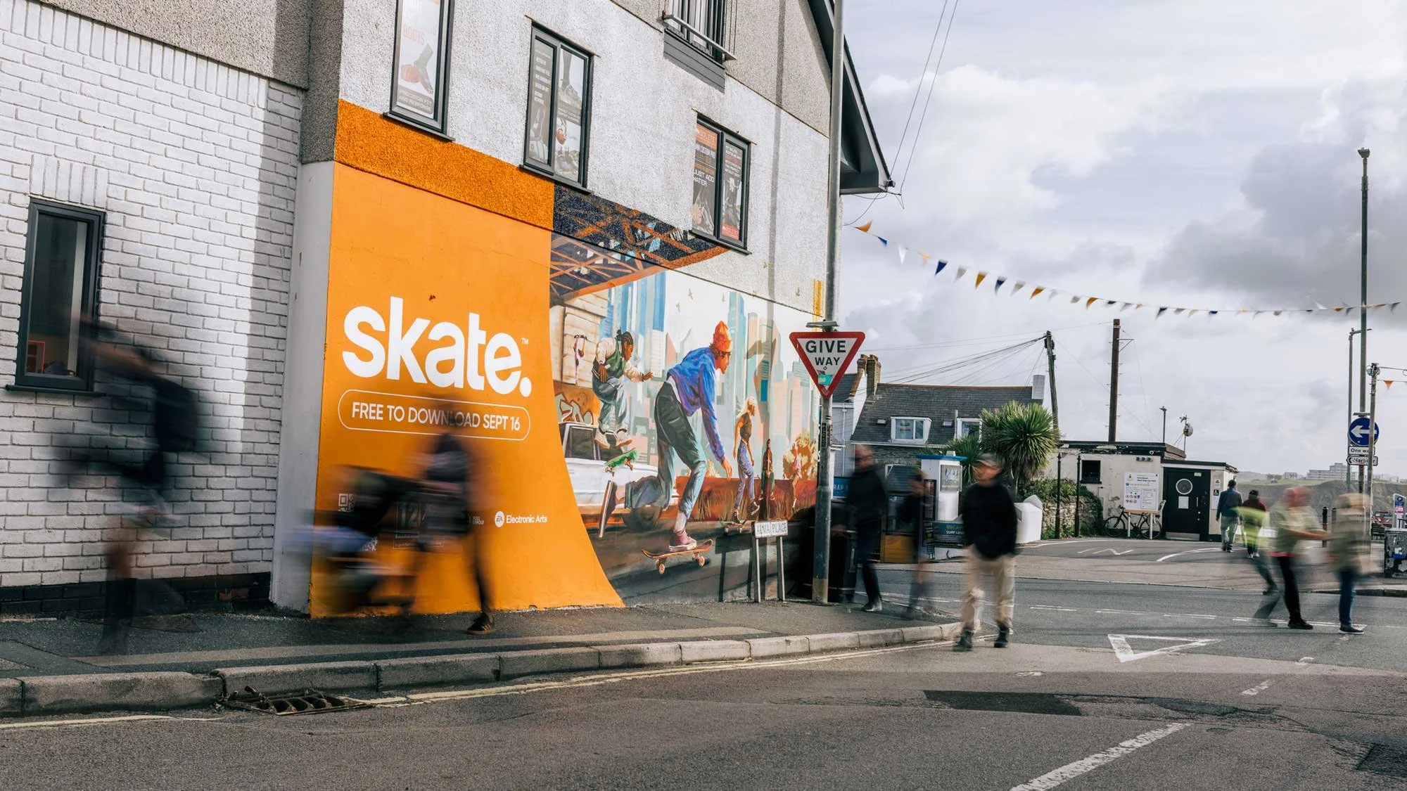 We painted this stunning artwork in Newquay for EA Games latest and much lauded Skate release. This free download is a dynamic social world for the skater community online, where they can skate together, interact and customise their experience. This was a perfectly targeted painting on the side of a surf shop, aimed at local boarders and attendees at the first UK Surf and Skate Expo taking place in the town, featuring big names from the industry alongside exhibitors, demos and talks.