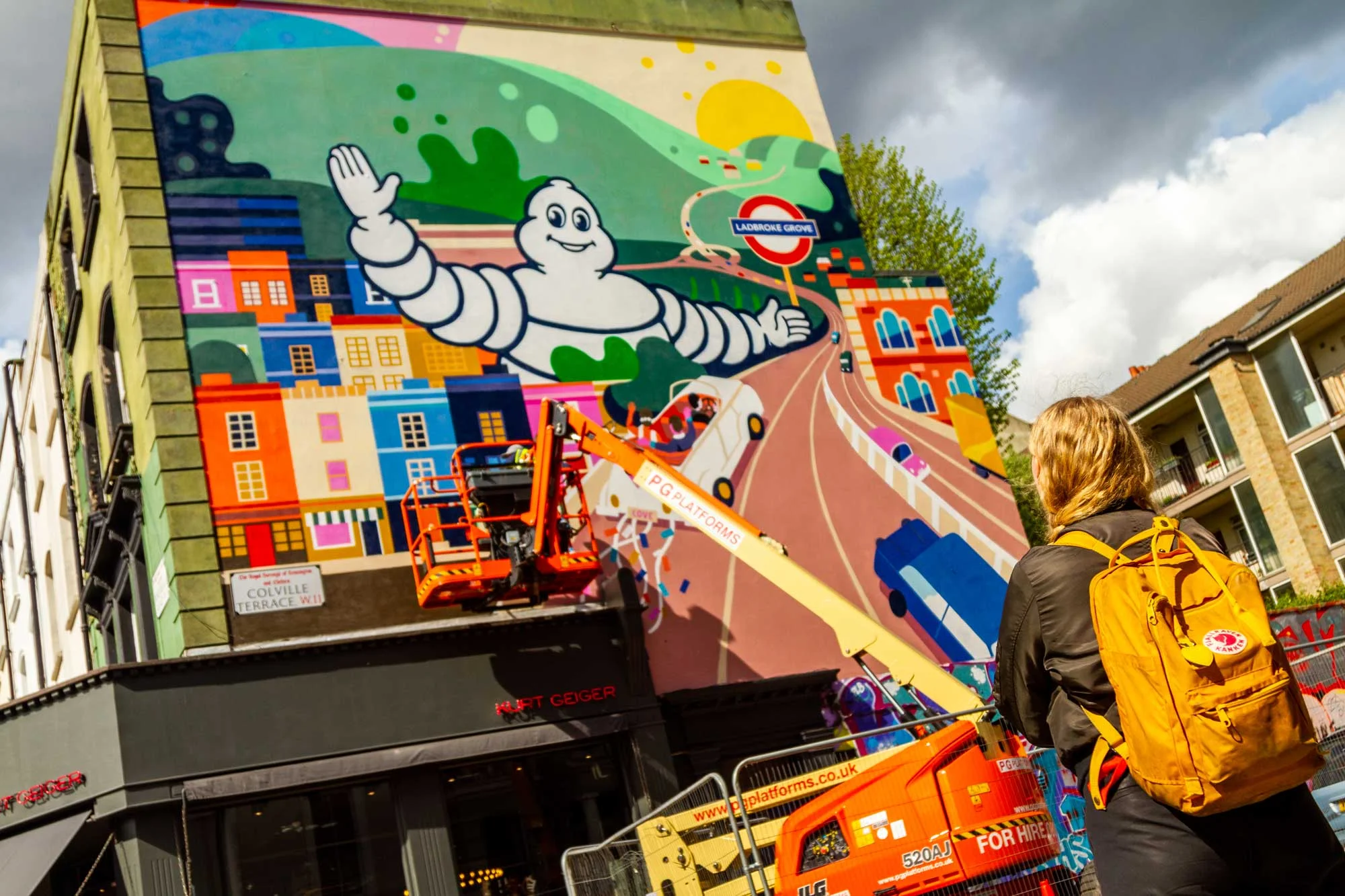 Michelin wanted to create a custom localised art piece for the residents of Notting Hill. We worked with Handsome Frank artist Petra Eriksson (below), to produce this colourful piece on Portobello Road showcasing the pastel coloured houses, the Westway and the famous brand icon waiving a newly married couple off on thier journey.