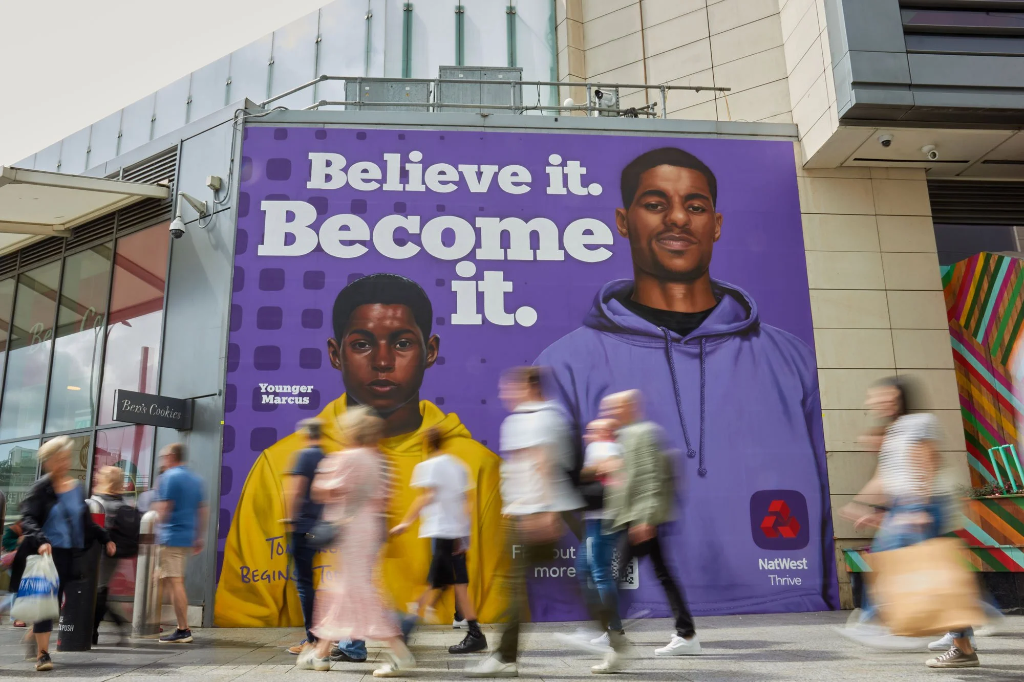We recently painted this photorealism artwork of Marcus Rashford as a boy and as a man for NatWest’s “Believe it. Become it” campaign via their agency at our bustling canvas location in Westfield White City.