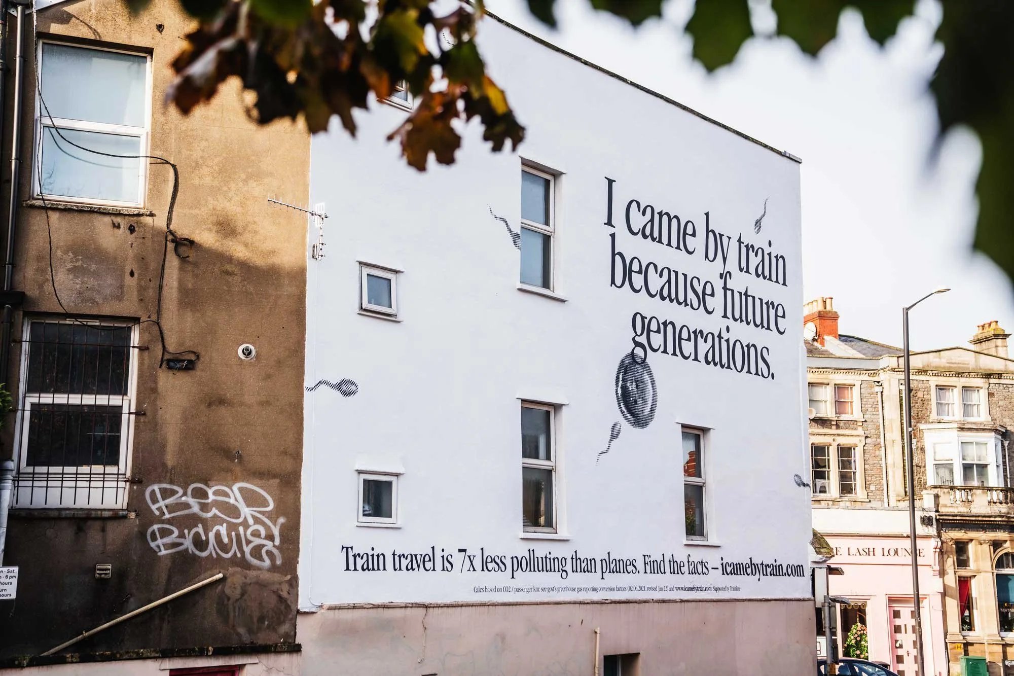 We painted this 3 mural campaign for The Trainline, as part of their “I came by train” eco message timed to coincide with Cop27. I came by train is a collective movement to help fight climate change. Because switching to train is one of the single best things you can do to lower your CO2 emissions. We produced individual artworks in Bristol, Birmingham and Manchester each with a distinct and important message.