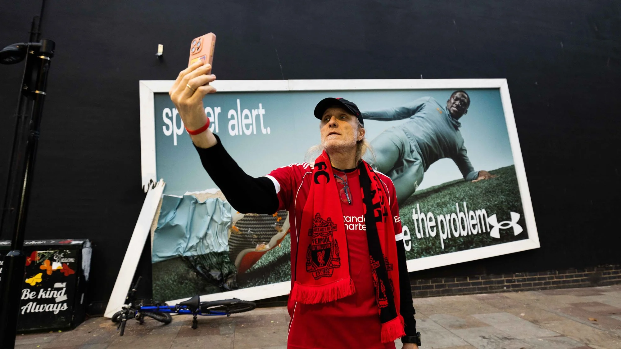 Under Armour’s “Be the problem” campaign, reframes “being a problem” as a competitive edge for athletes, encouraging them to disrupt the game and break expectations. We worked to produce this Ibrahima Konaté special build execution on our wall in the centre of Liverpool’s Ropewalks district to physically demonstrate to Kopites the strength of their French defenders tackle, dislodging and breaking the poster frame and destroying a mountain bike.