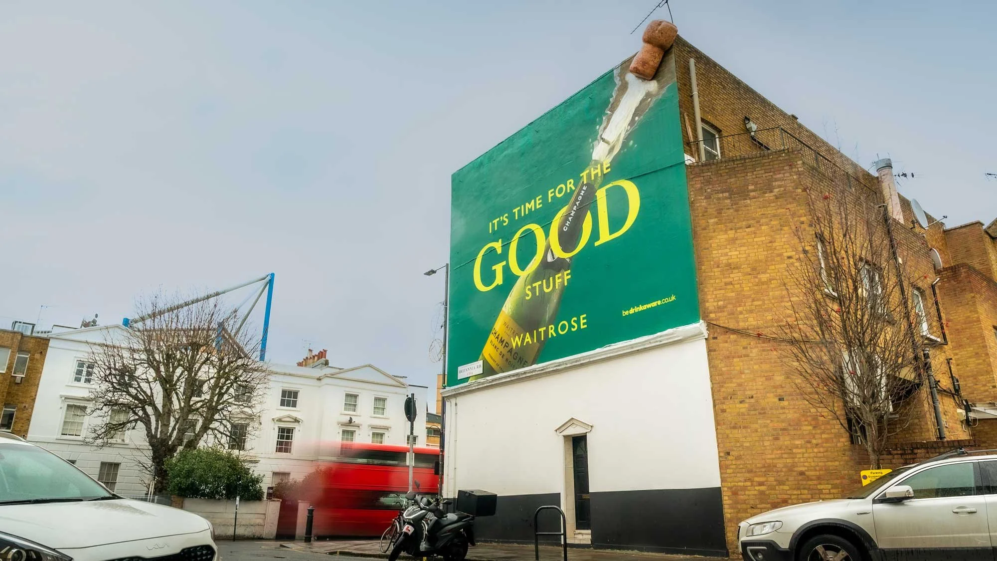We created these two bespoke murals, both with 3D “good stuff” elements for Waitrose’s festive Christmas campaign “It’s time for the good stuff!” in partnership with their agency Talon. Powering the champagne and mince pie season to the people of Chelsea and Exmouth Market with these massive impactful hand painted OOH artworks.